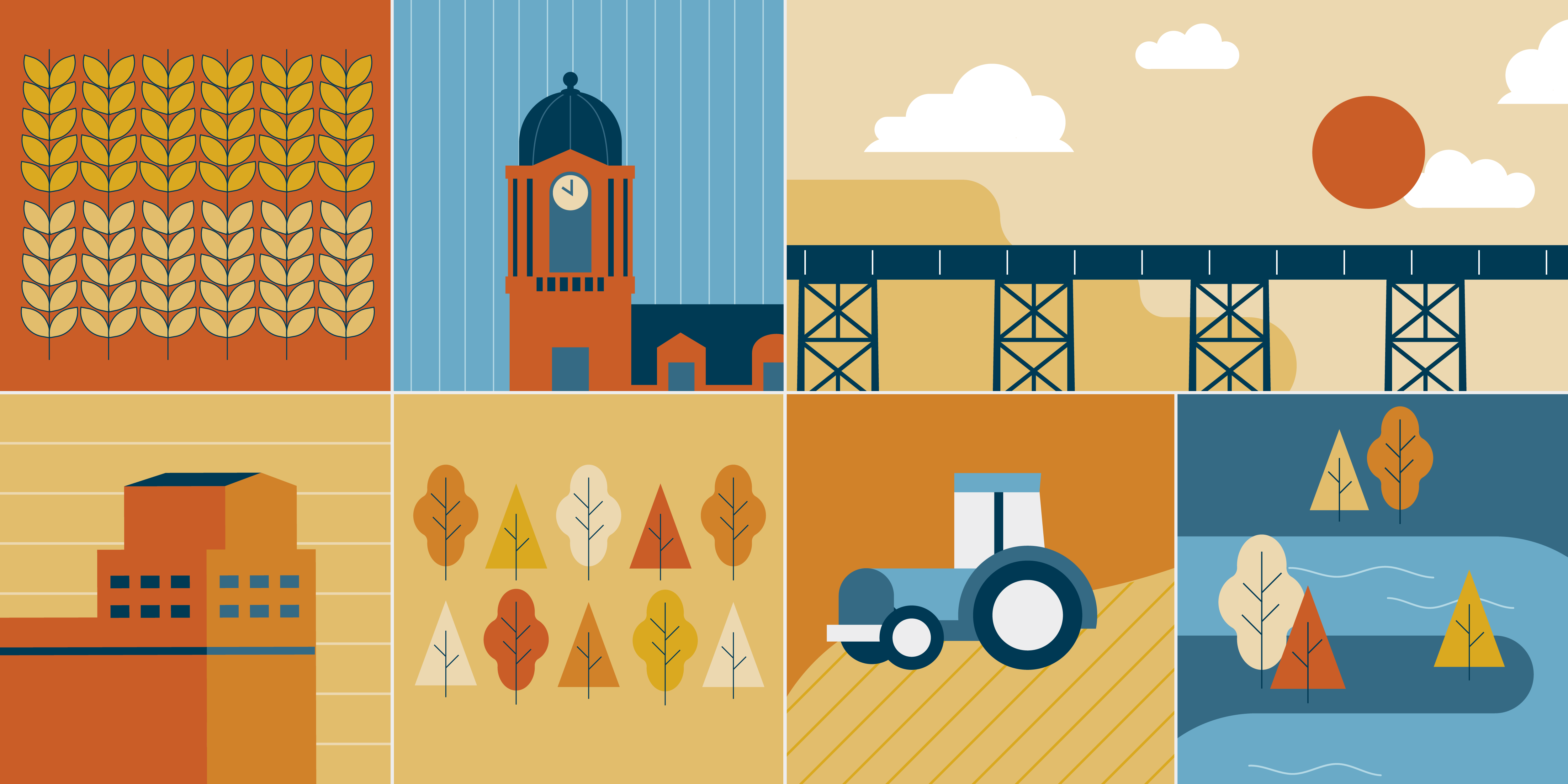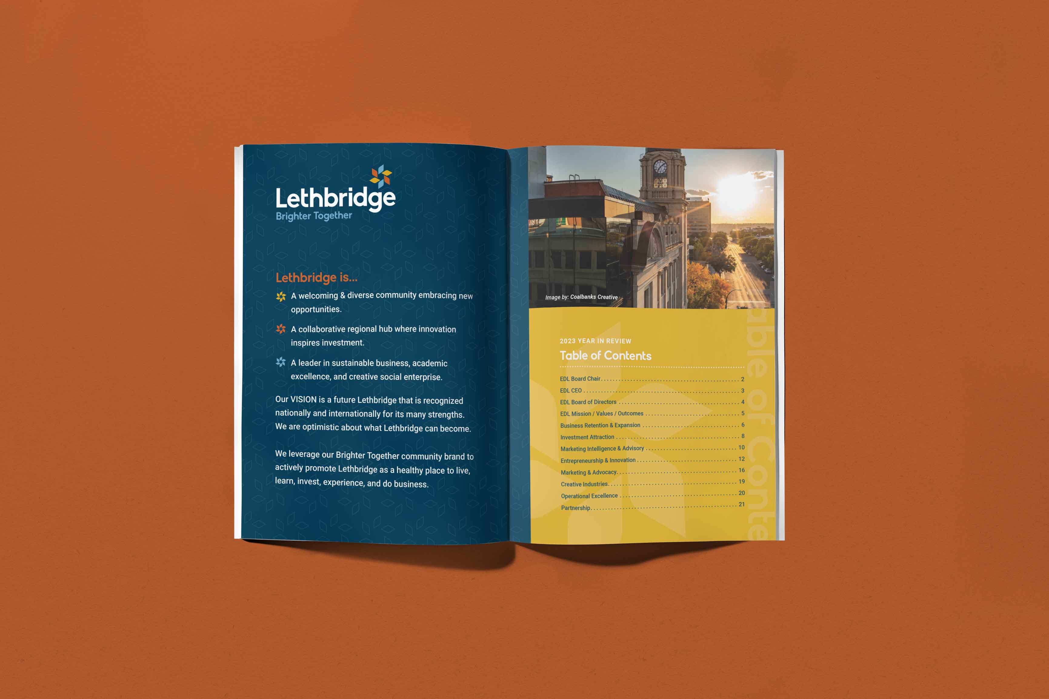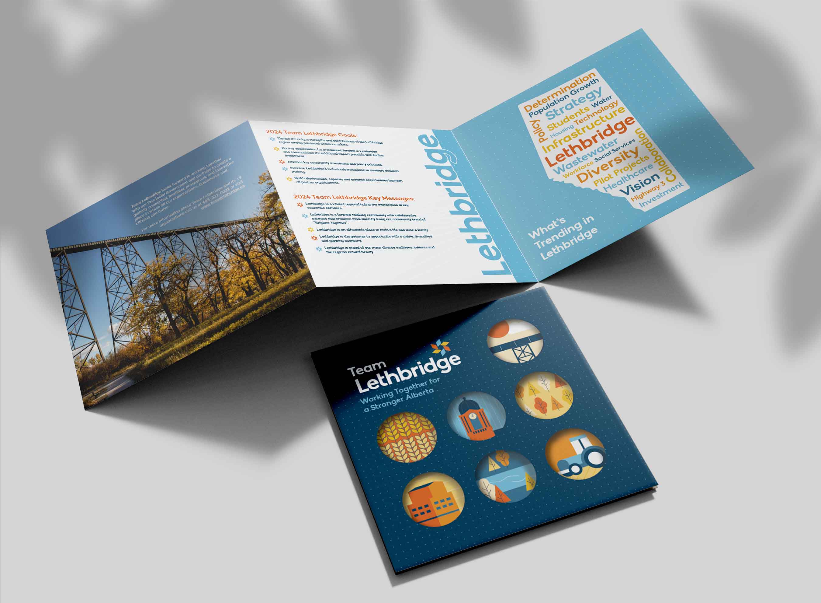 Designed as a leave-behind for a conference in Edmonton, this brochure needed a memorable, tactile feature. I created seven illustrations inspired by Lethbridge’s landmarks and agricultural roots, incorporating them into a cover design with seven circular die-cuts that reveal the artwork beneath. I worked closely with the printer to prepare the file for precise printing and cutting.