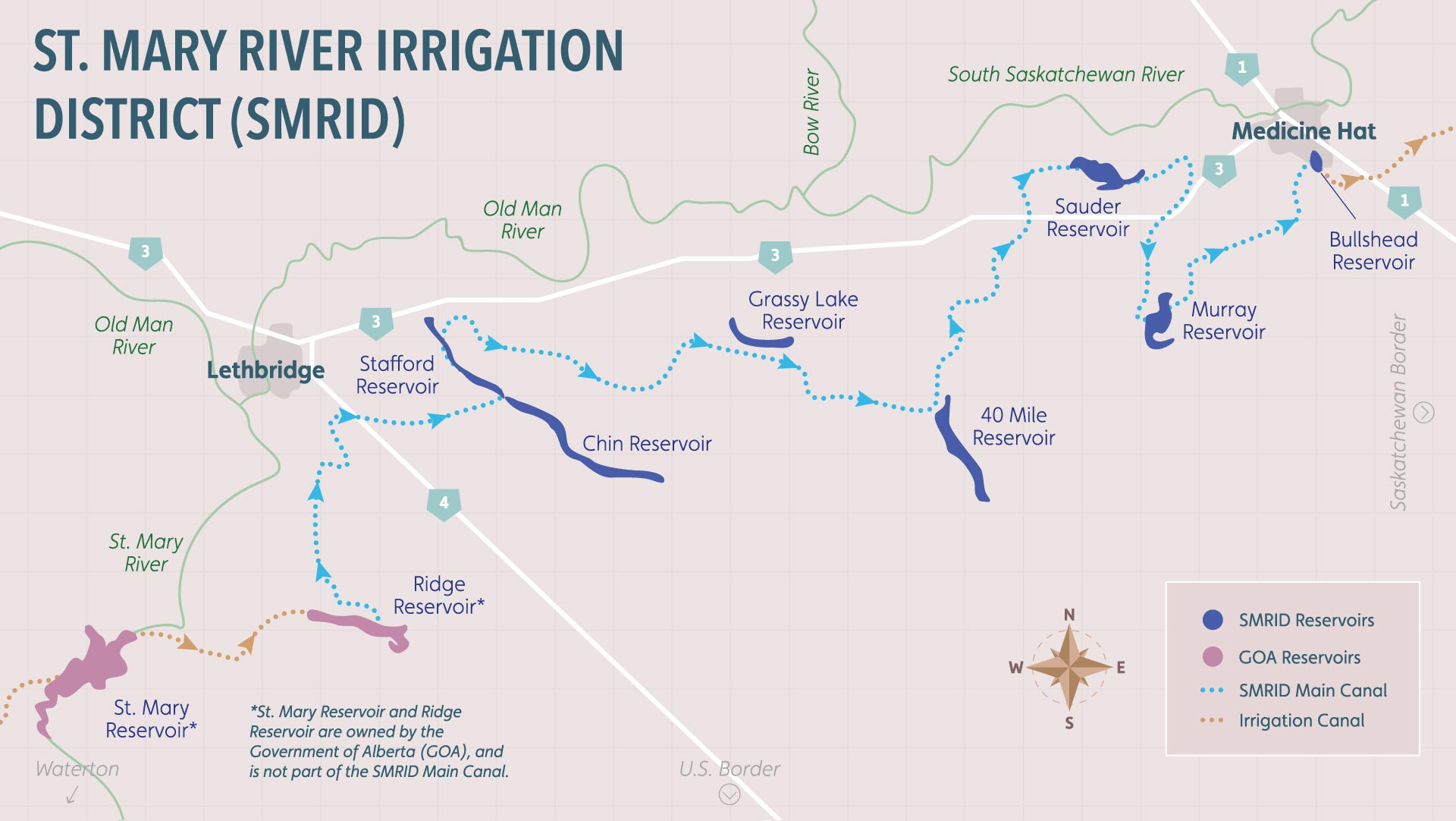 The St. Mary River Irrigation District aimed to create visually engaging signage for placement at each of their reservoirs throughout the region. The goal of the billboards was to answer frequently asked questions and help the public better understand SMRID’s operations and the important role reservoirs play in supporting agriculture, recreation, and regional sustainability.